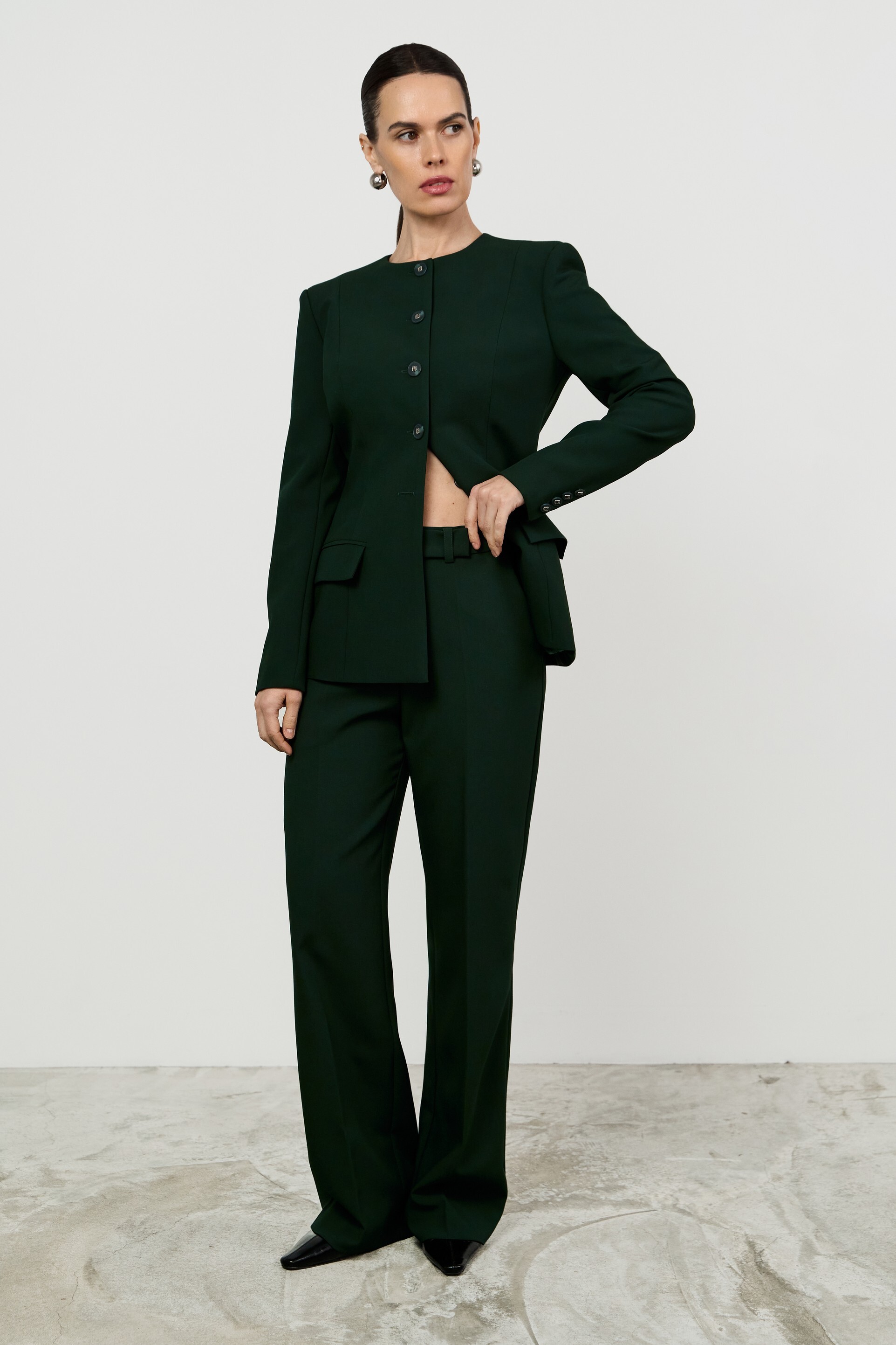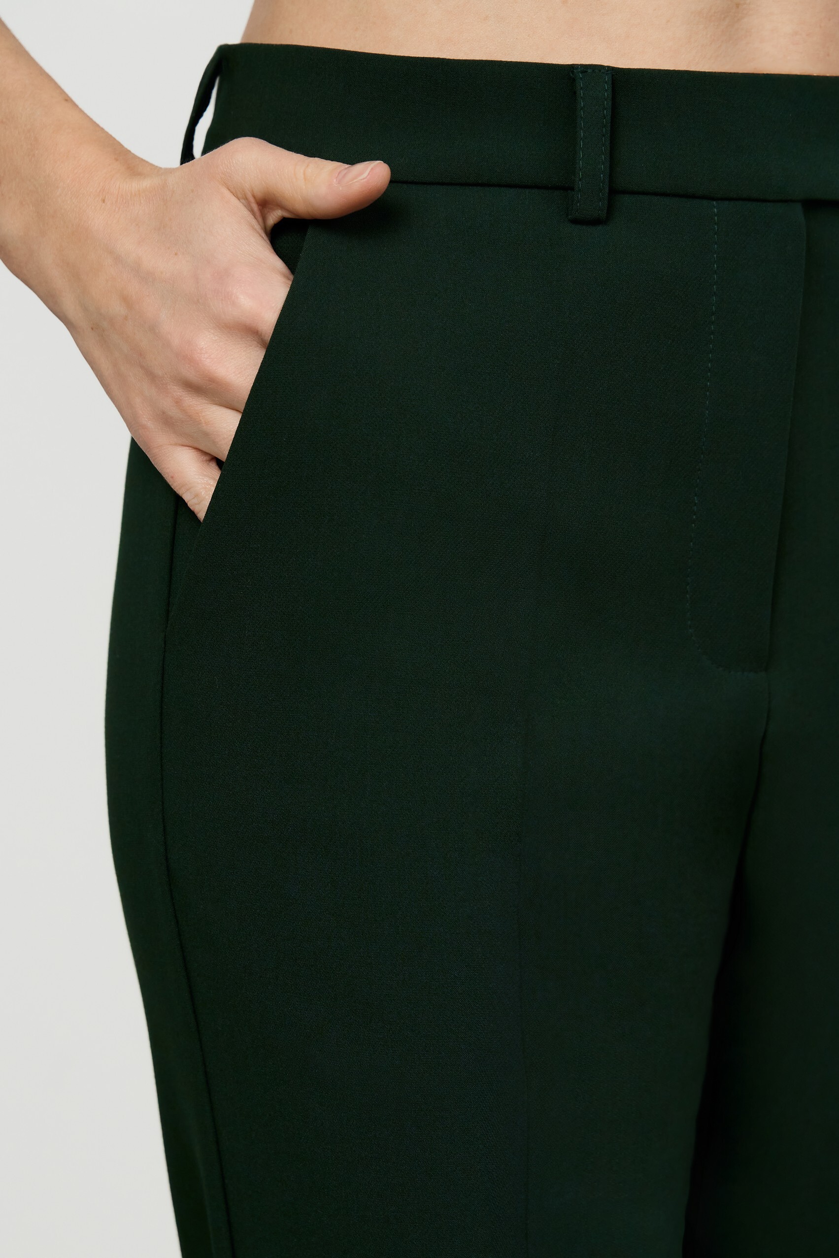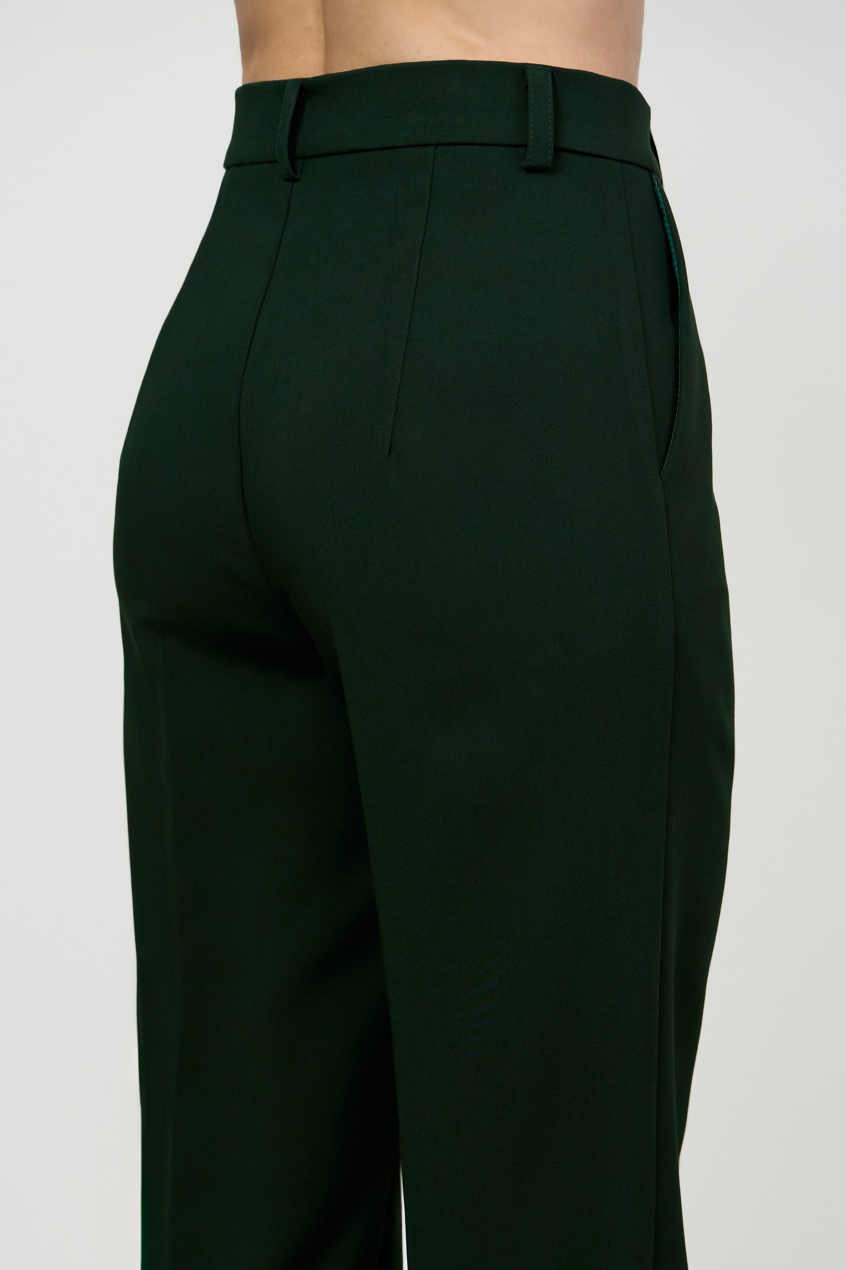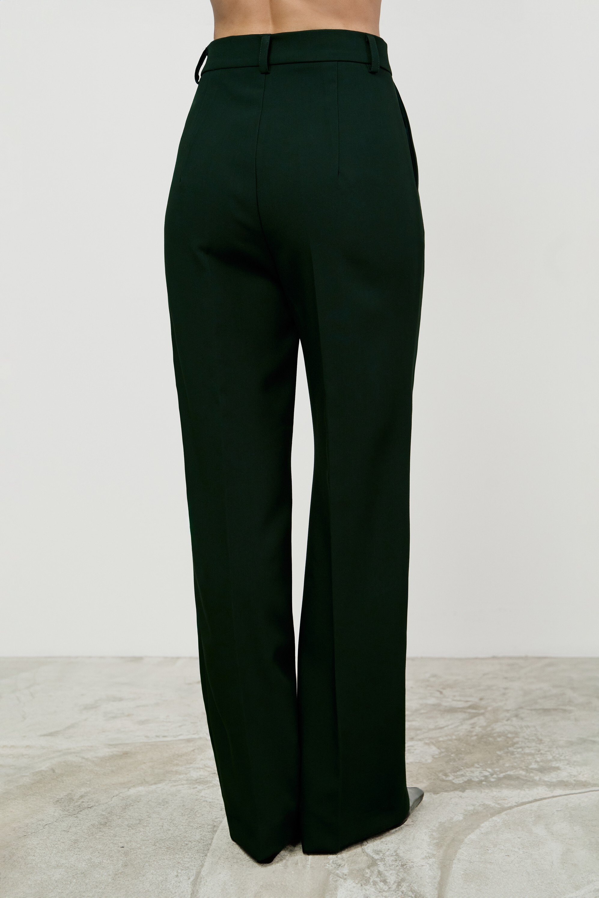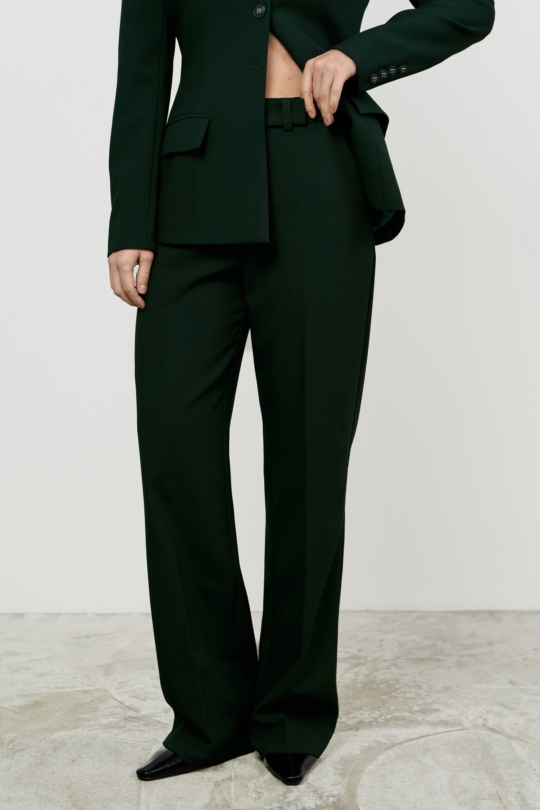 Выполнены из нашей фирменной костюмной ткани Mono Base — она держит форму, приятна к телу и комфортна в движении. Карманы с отрезным бочком добавляют функциональности, а застежка на крючок обеспечивает удобную посадку.