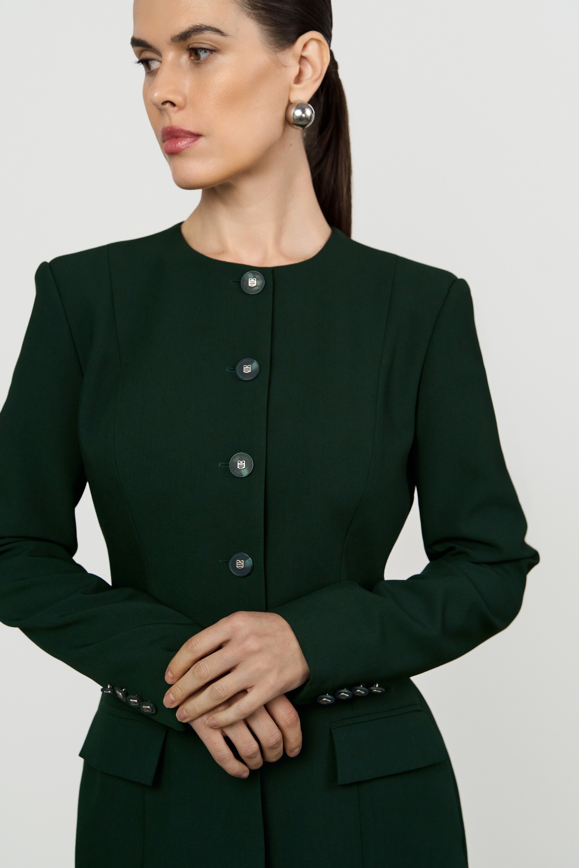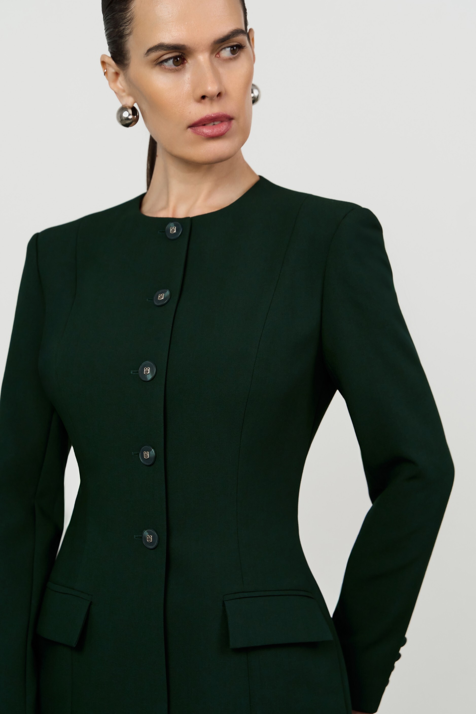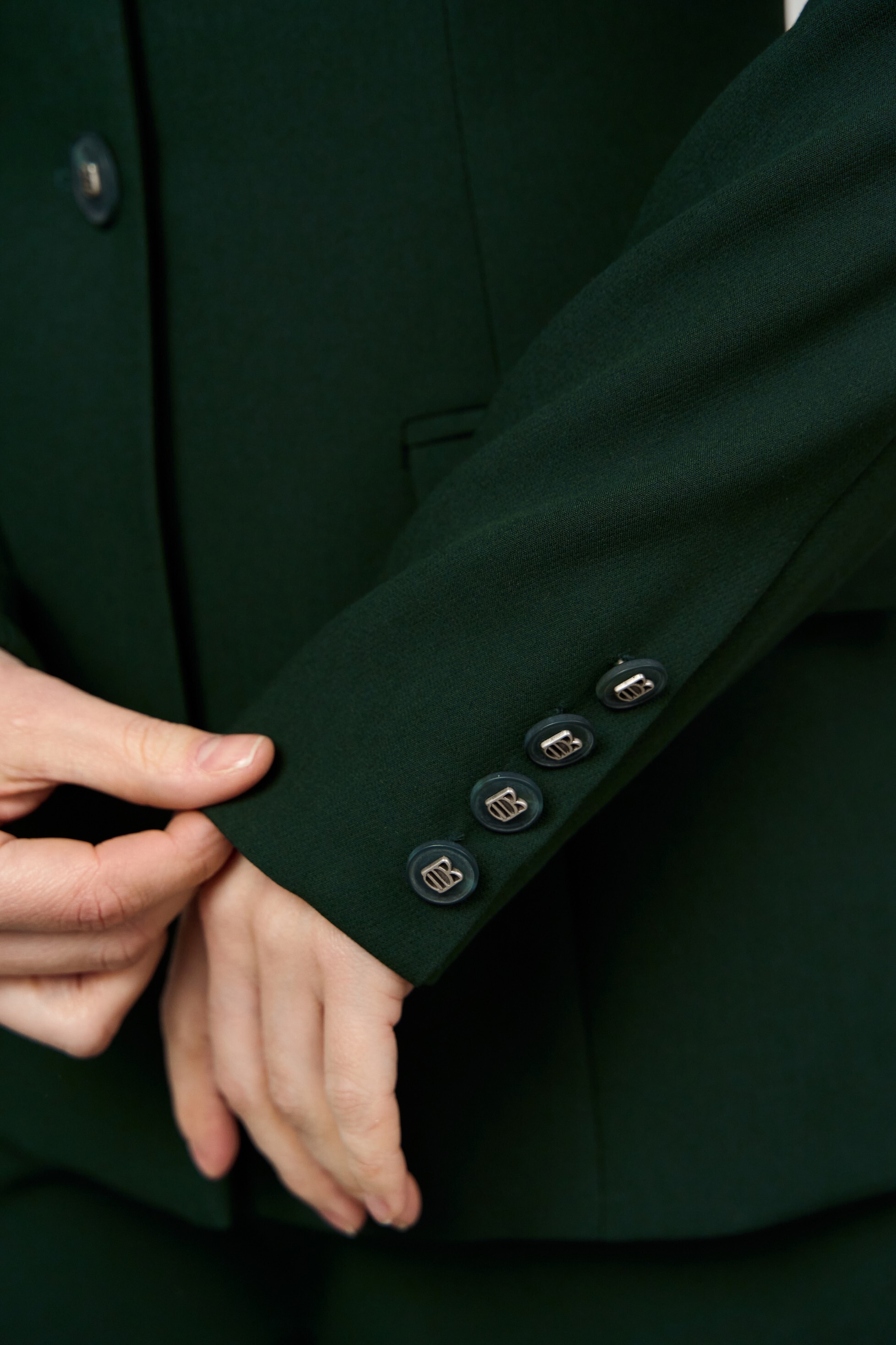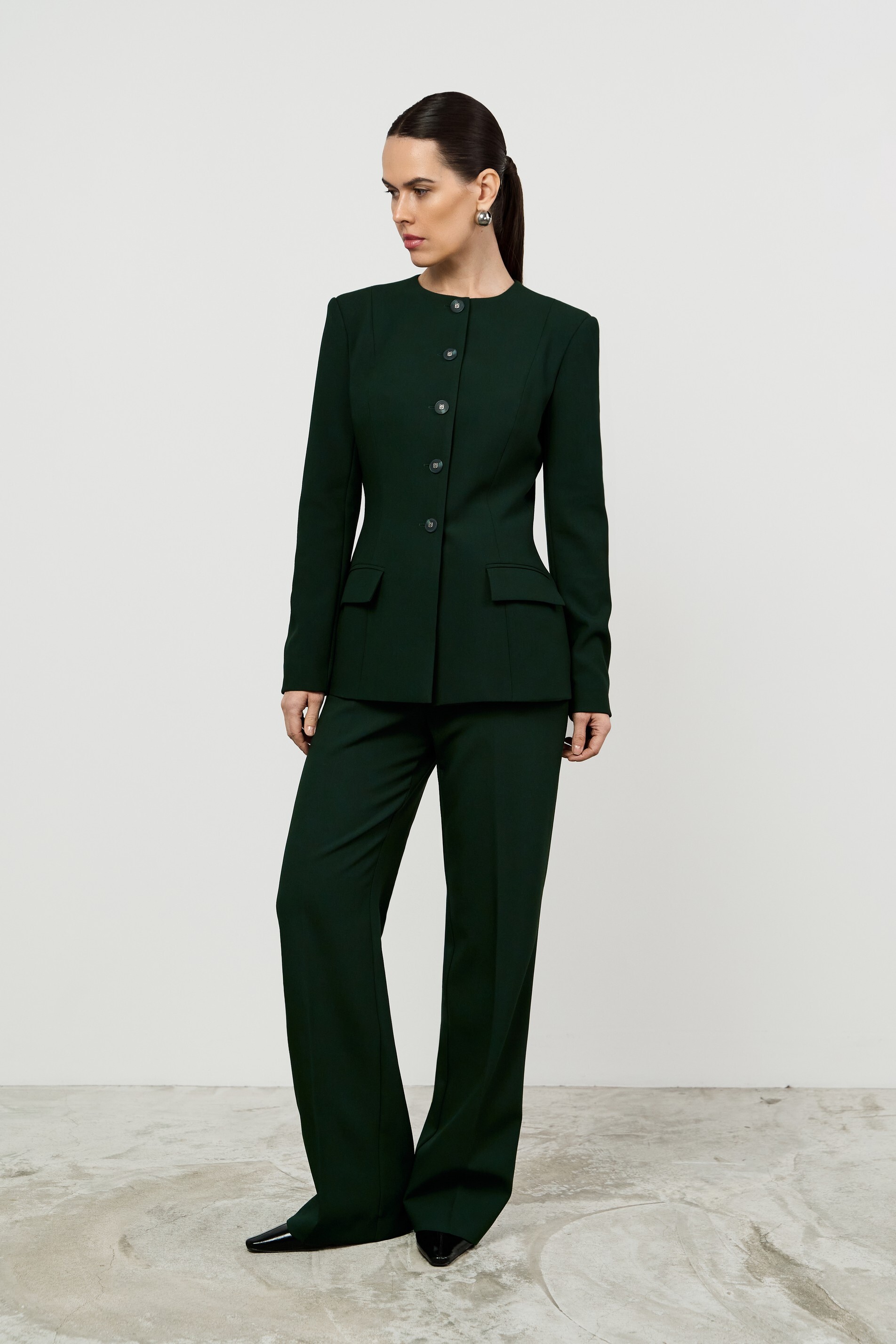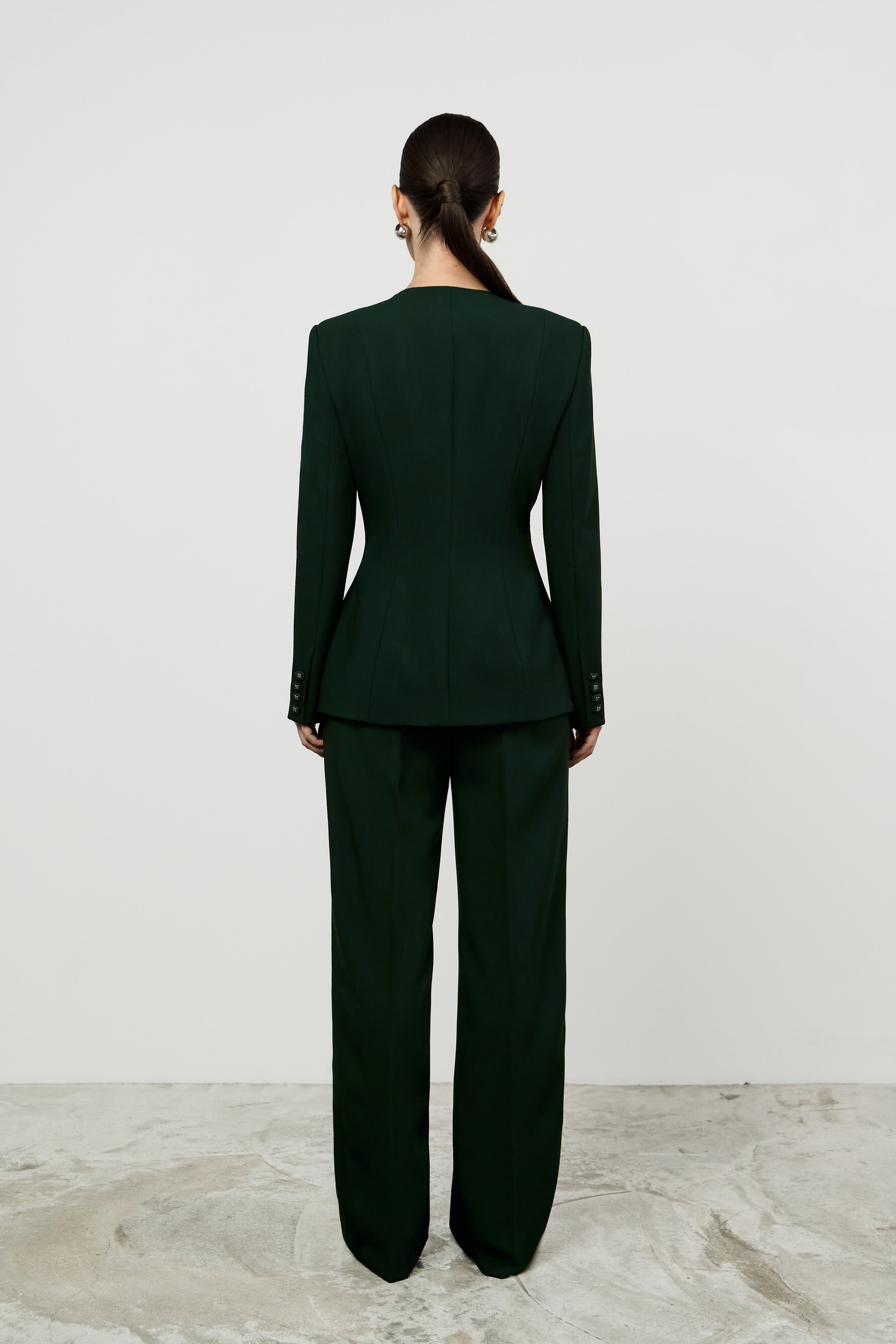 Выполнены из нашей фирменной костюмной ткани Mono Base — она держит форму, приятна к телу и комфортна в движении. Карманы с отрезным бочком добавляют функциональности, а застежка на крючок обеспечивает удобную посадку.