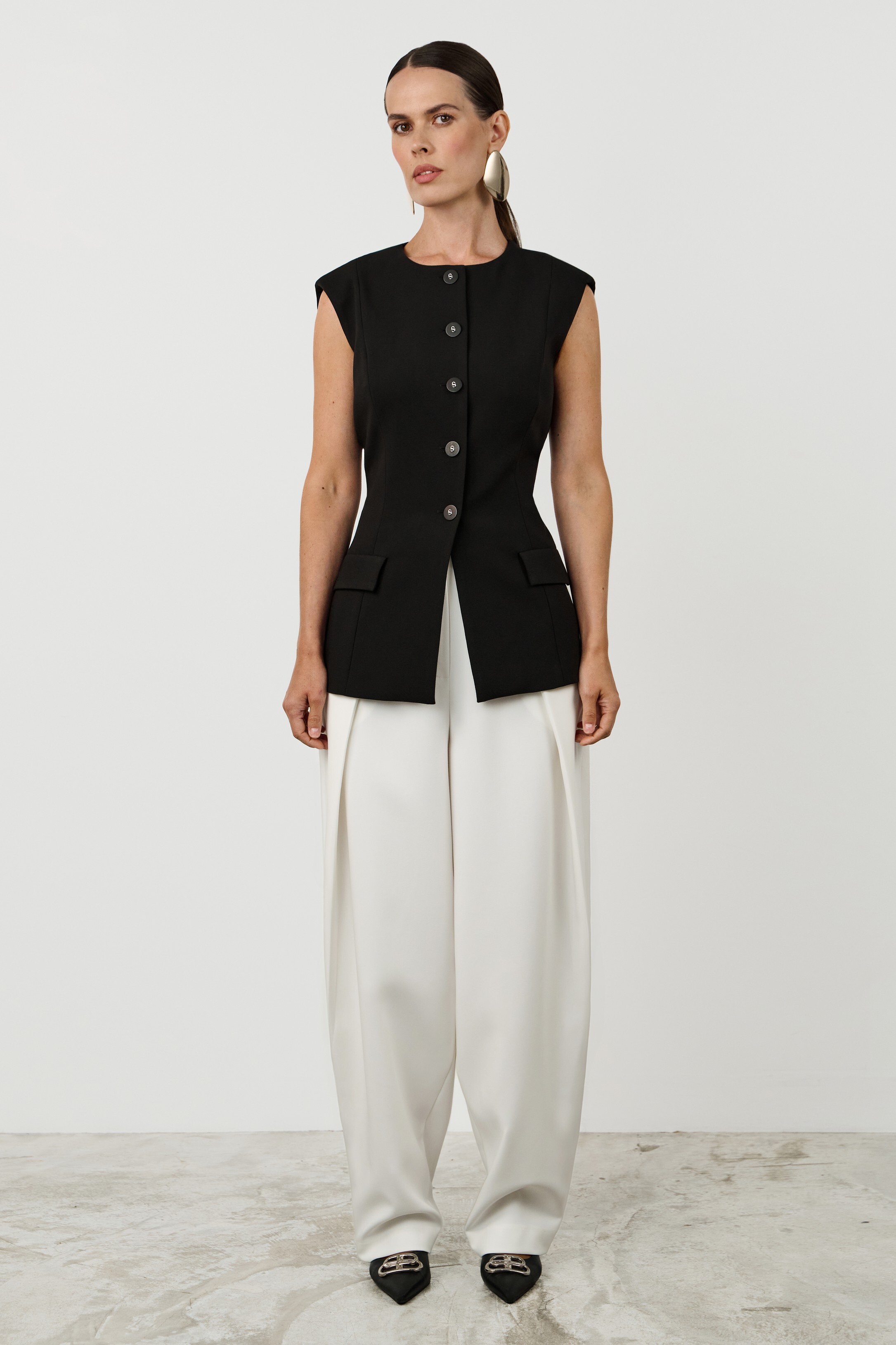 Выполнены из костюмной ткани коллекции Mono Base, держат форму и при этом выглядят легко и современно. Универсальная и стильная база, которая станет акцентом в любом образе — от расслабленного повседневного до более структурированного и модного.
