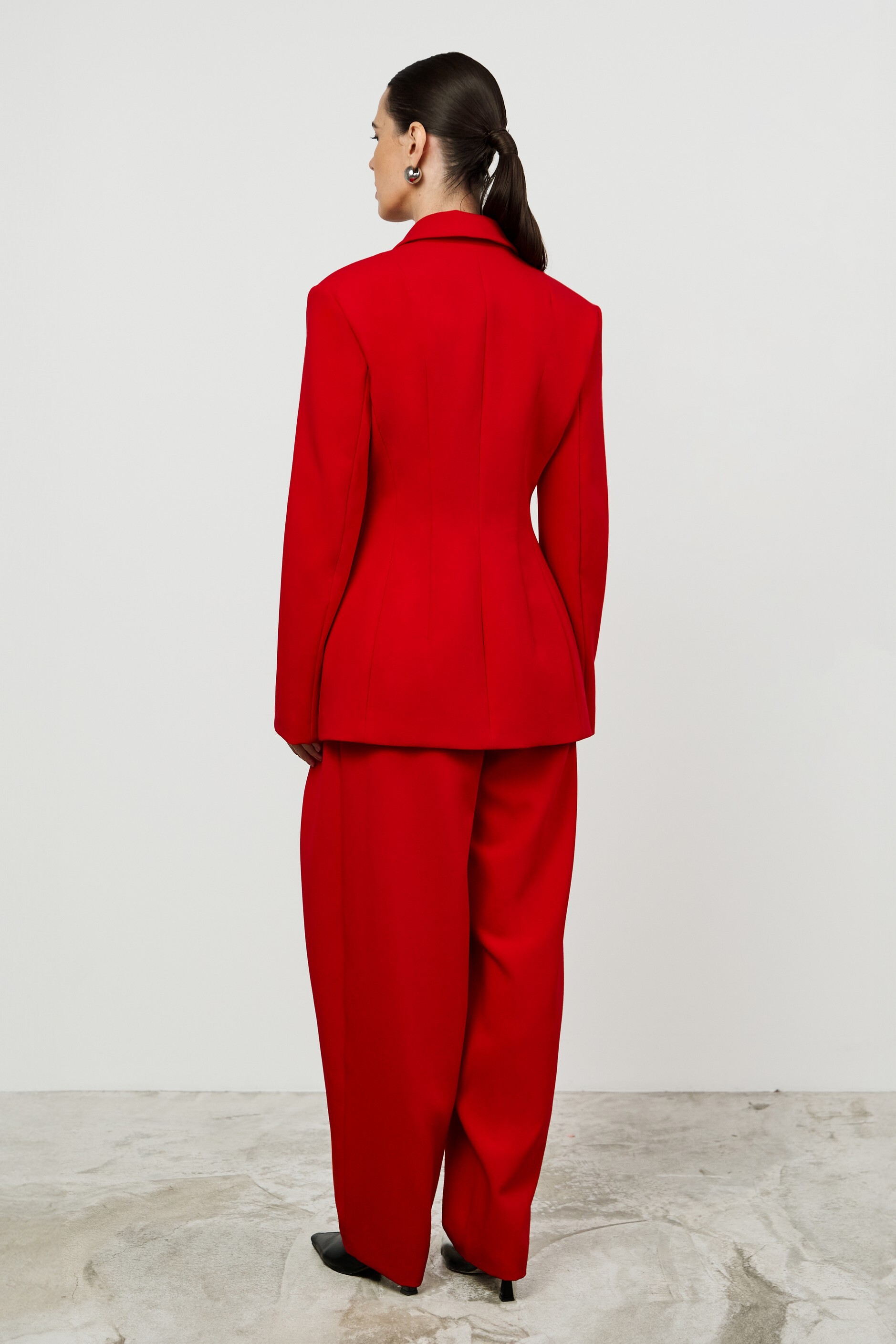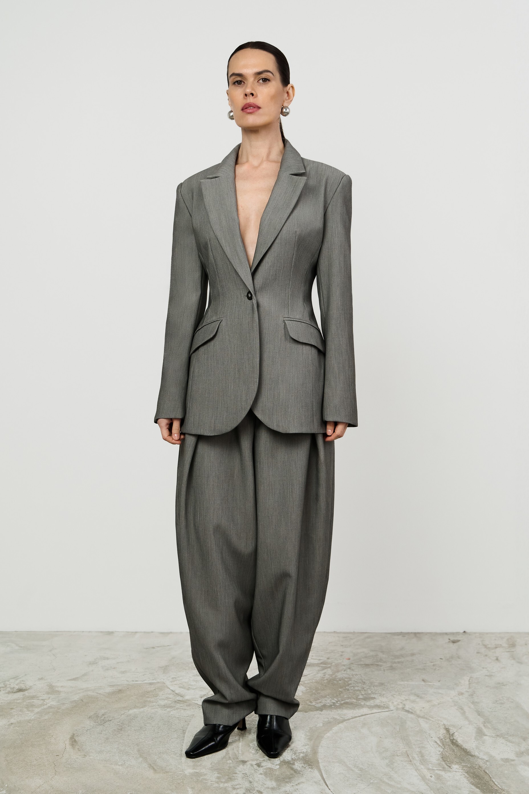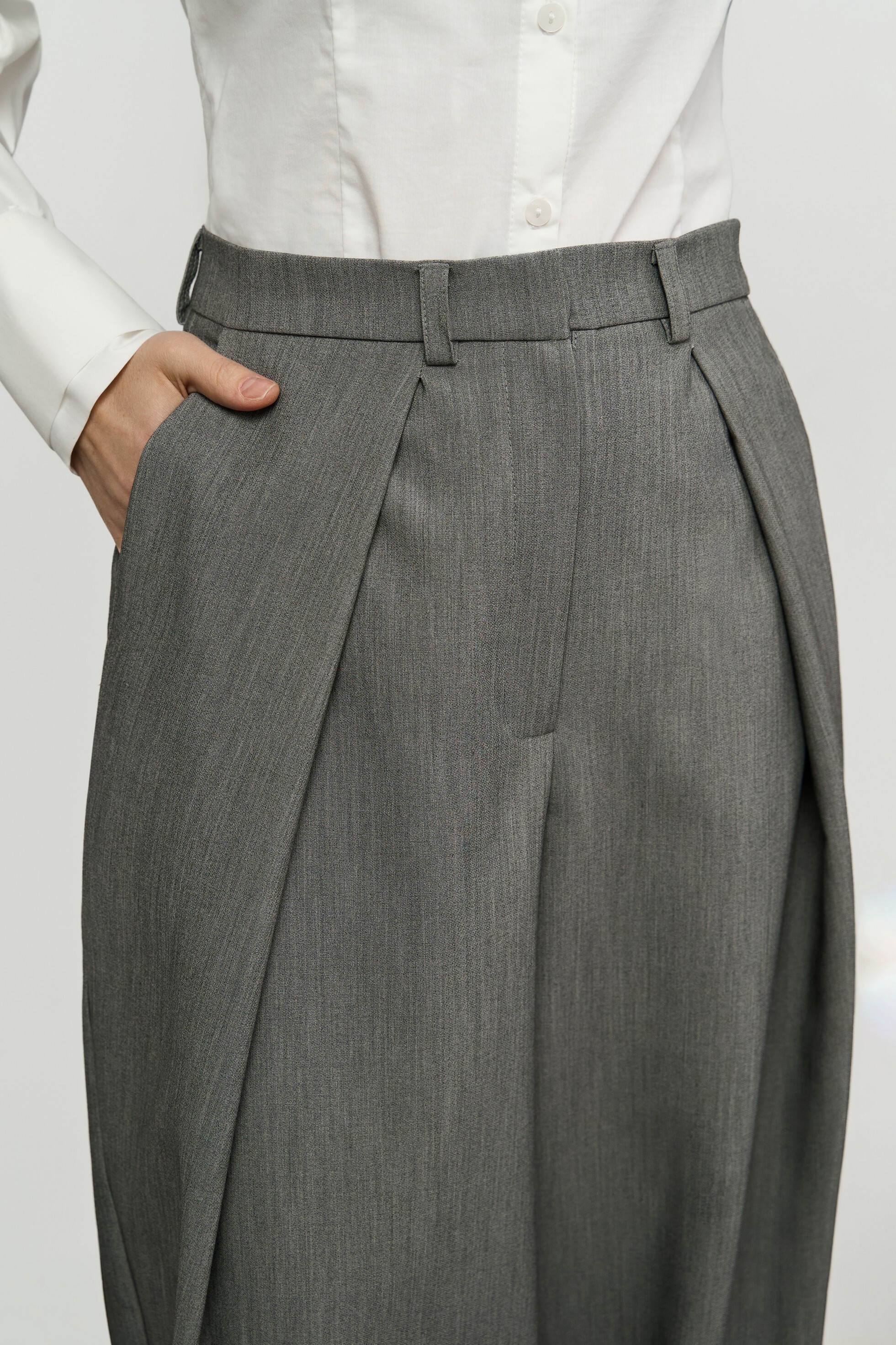 Выполнены из костюмной ткани коллекции Mono Base, держат форму и при этом выглядят легко и современно. Универсальная и стильная база, которая станет акцентом в любом образе — от расслабленного повседневного до более структурированного и модного.