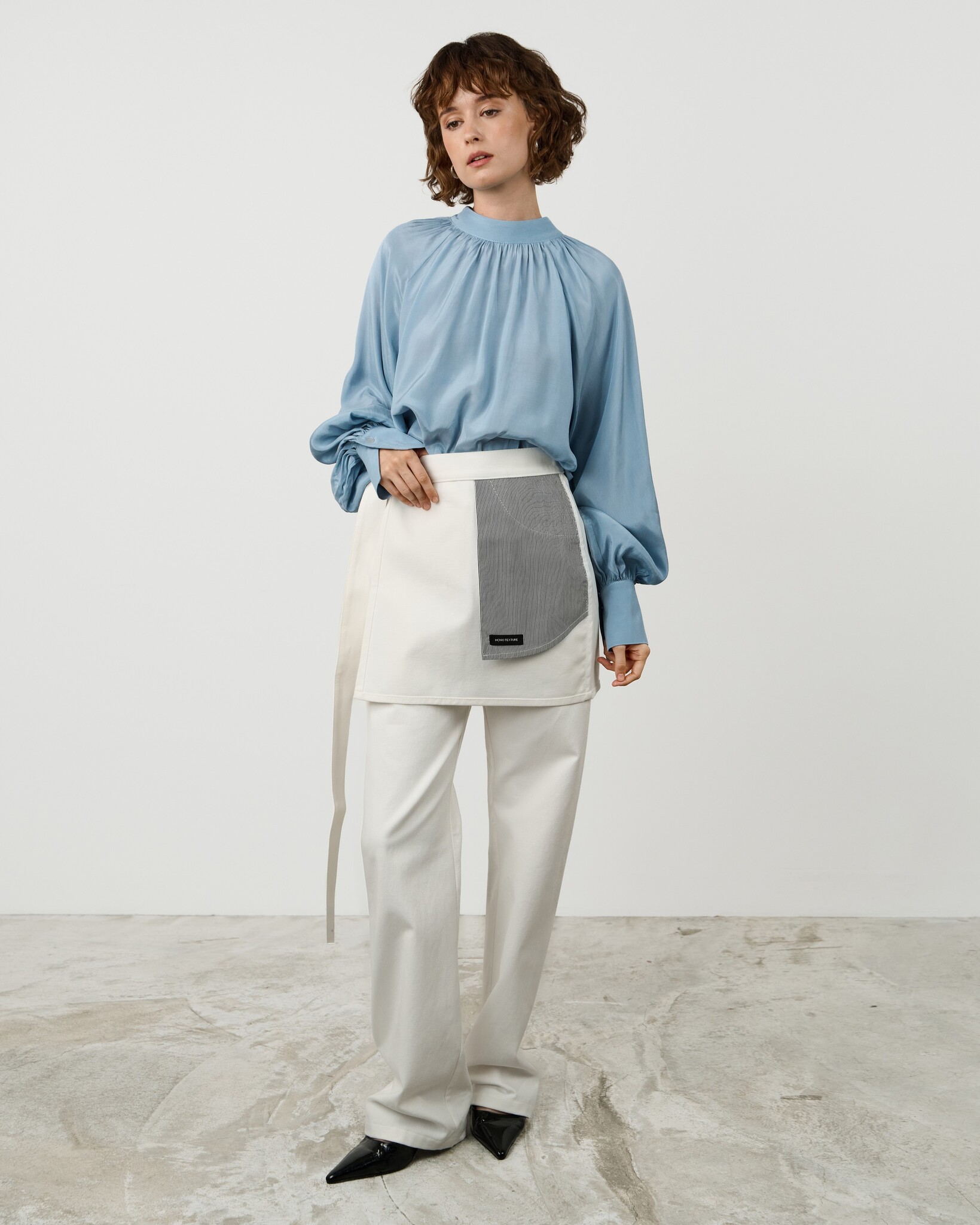 Посадка слегка занижена, что придаёт образу расслабленную современную нотку. Пояс притачной со шлёвками, застёжка на крючок и гульфик создают аккуратный и комфортный посад. Карманы с отрезным бочком добавляют удобства и завершённости дизайну.