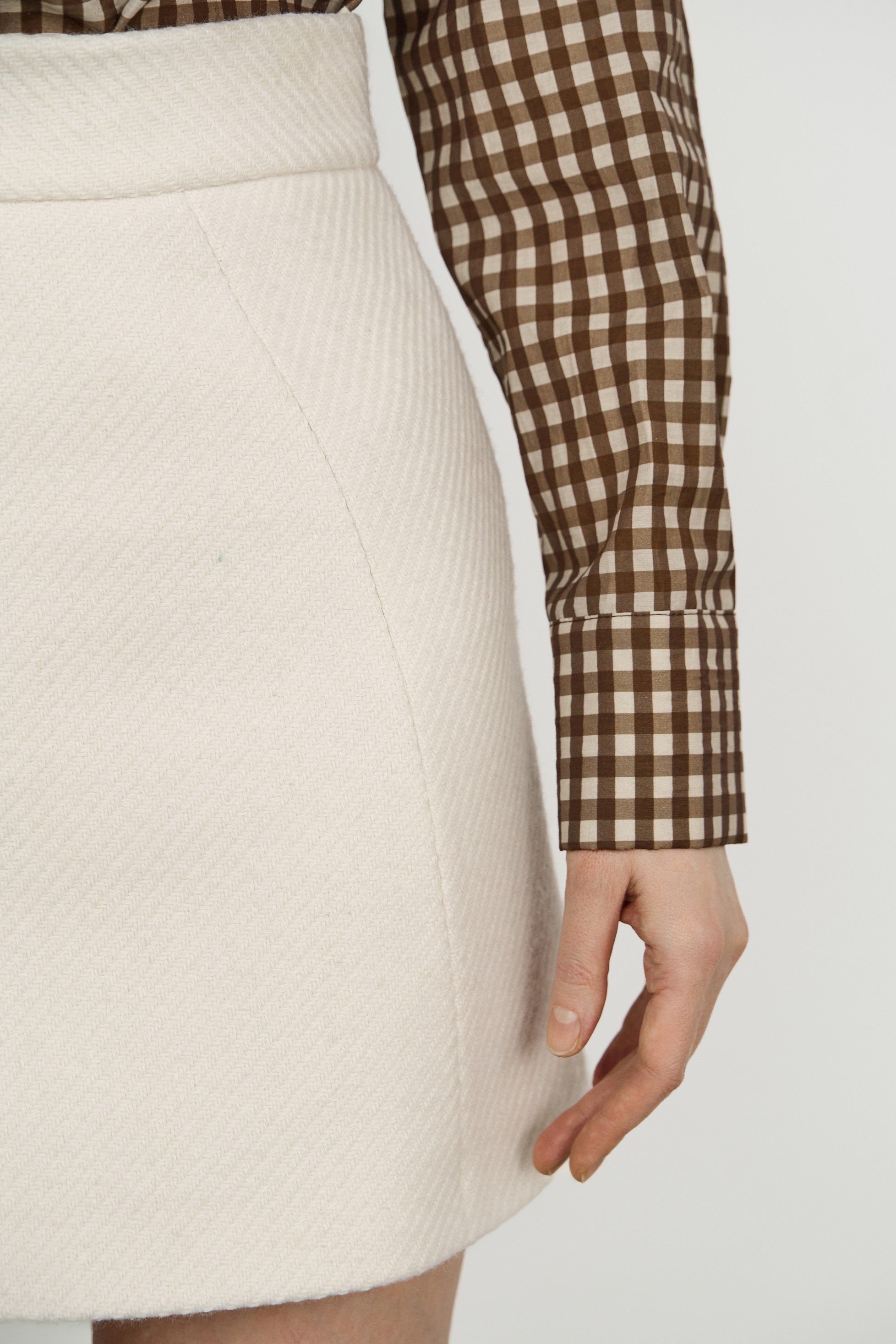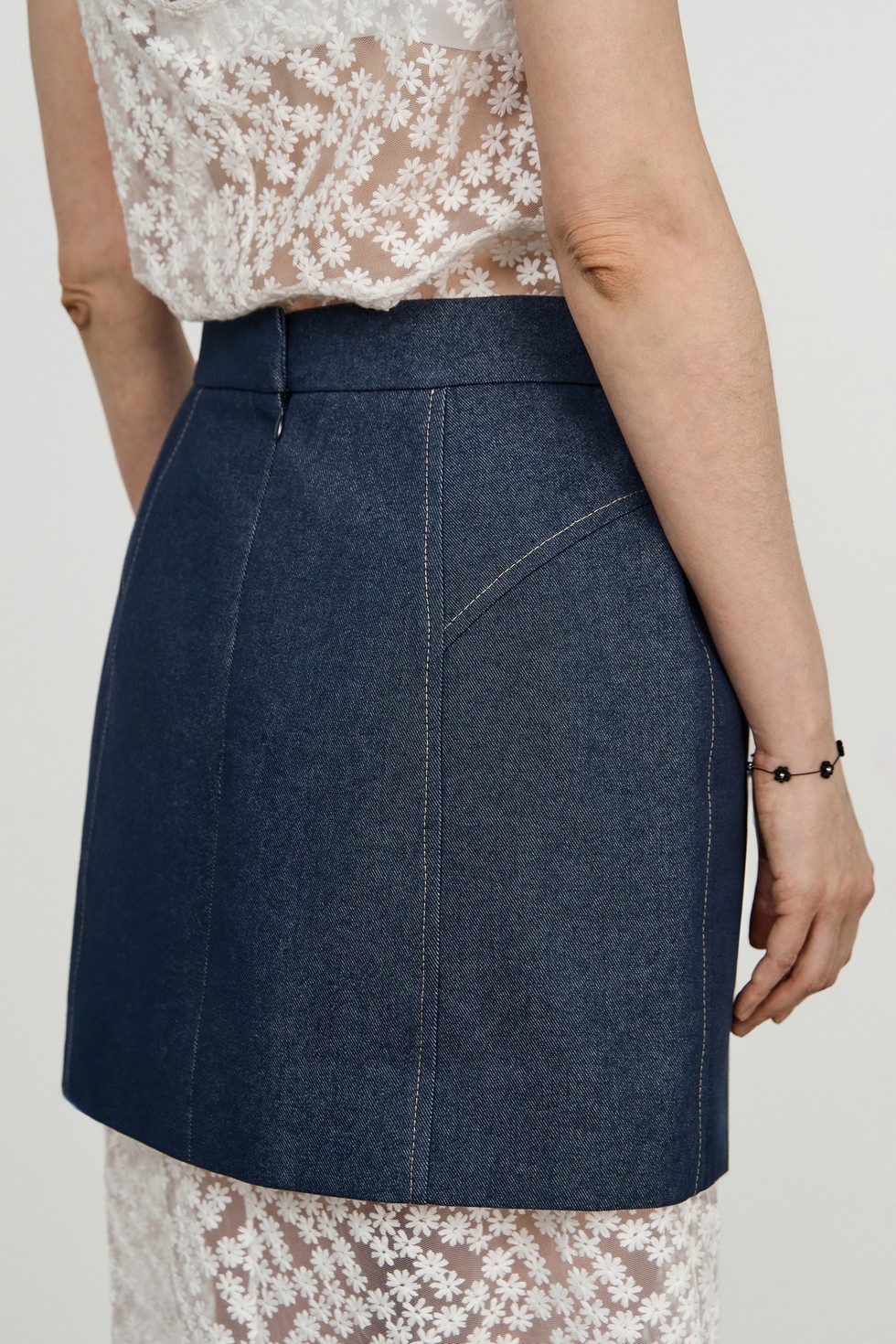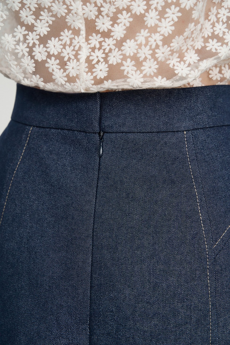 Юбка прямая с рельефами в длине мини. Модель на подкладе, застежка- потайная молния.