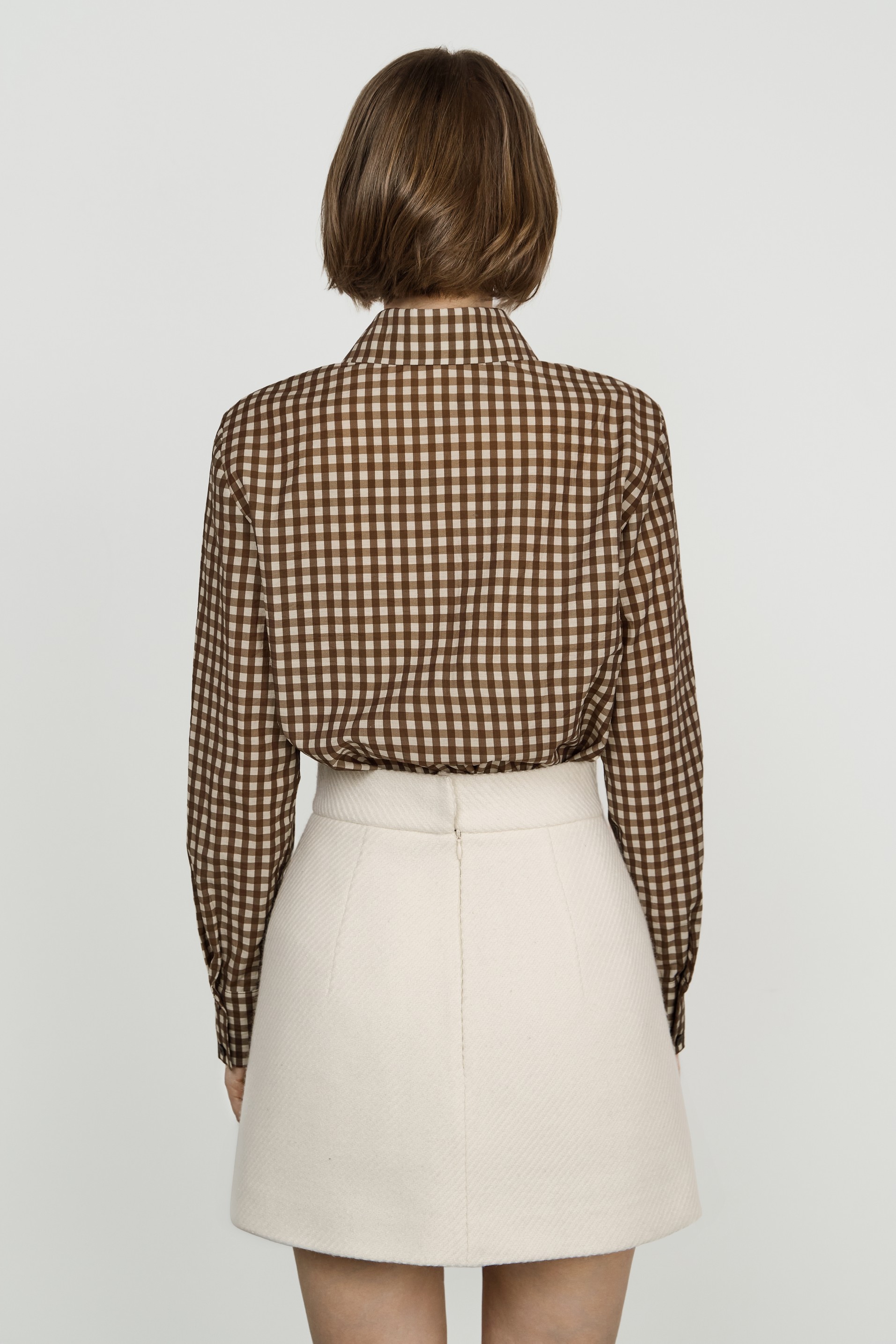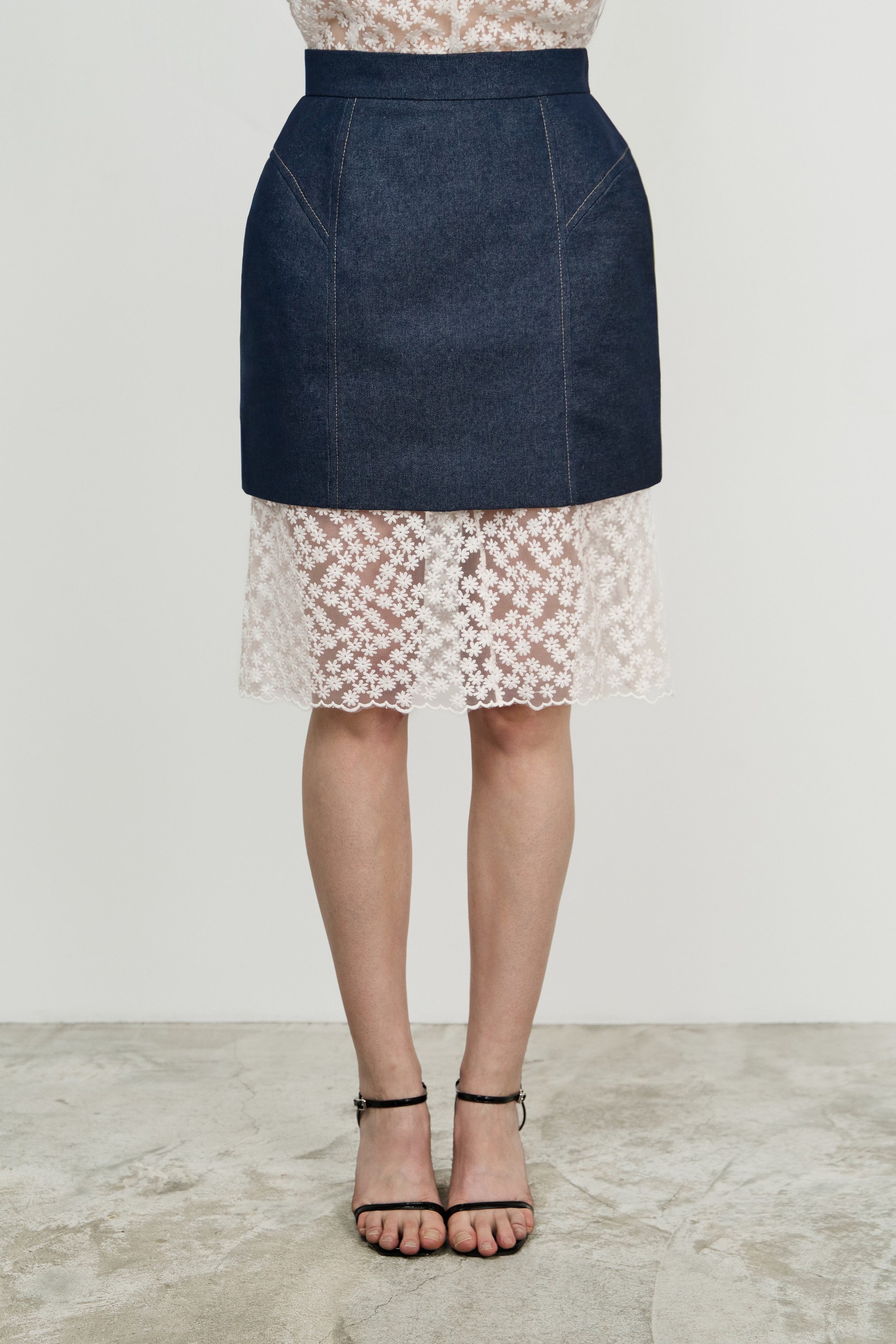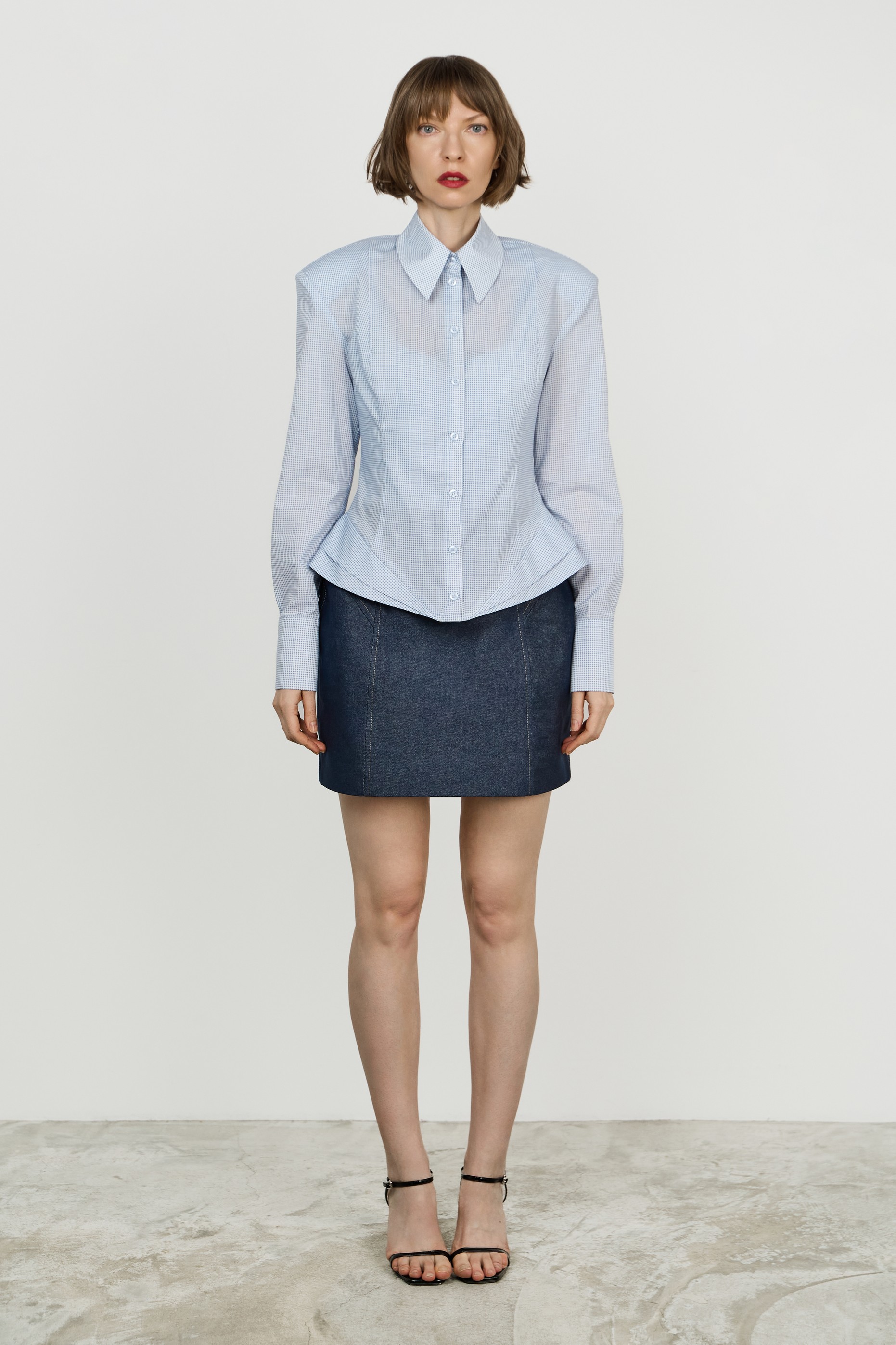 Юбка прямая с рельефами в длине мини. Модель на подкладе, застежка- потайная молния.
